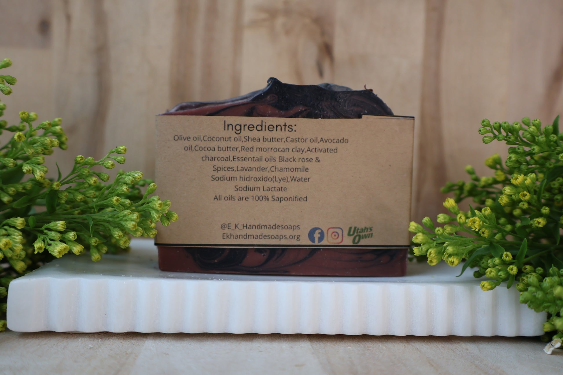 ingriedents: Olive oil,Coconut oil,Shea butter,Castor oil,Avocado oil,Cocoa butter,Red morrocan clay,activated charcoal,Essentail oilss black rose & Spices,lavander,Chamomile
